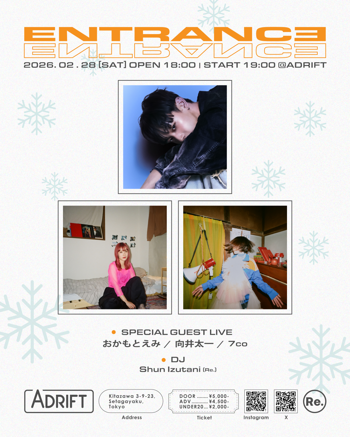 前回大反響を呼んだ「ENTRANCE」の第5回が、2月28日(土)下北沢ADRIFTにて開催決定!
